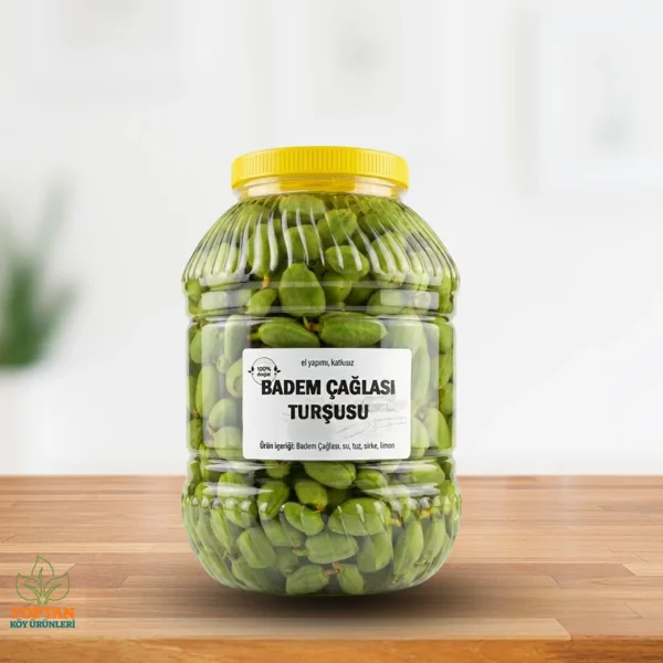 Bu ürün toptan olarak satılmaktadır. Restoran, kafe, otel, şarküteri ve market gibi işletmeler; düzenli tedarik, raf sürekliliği ve standart lezzet sunumu için toptan alım avantajlarından yararlanabilir. Badem çağlası turşusu; meze ve tabak sunumlarında “farklı tat” arayan misafirler için özel bir seçenek sunar.