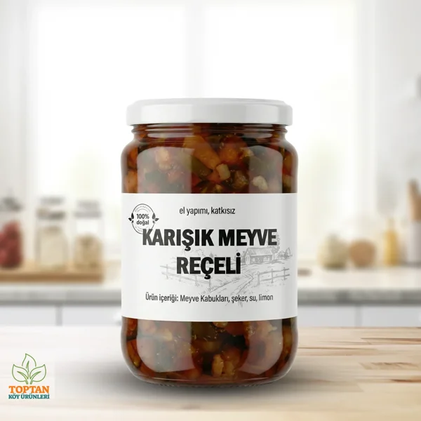 Karışık Meyve Reçeli cam kavanozdadır. Net 780 Gr'dır