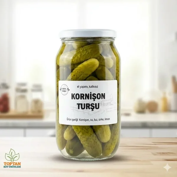 Mevsiminde yetişen en kaliteli Kornişon turşusunden elde edilen turşu, tamamen katkısız olup hiçbir koruyucu ve katkı maddesi içermez. . Kornişon turşusu geleneksel yöntemlerle hazırlanmıştır.